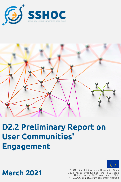 The bulk of the report is dedicated to describing the stakeholder engagement strategy follow-up and implementation, which is elaborated along the following major lines: events, and aggregating researchers into smaller communities via a series of calls, interviews, surveys and publications, activating communities and publications. These activities are supported by the SSHOC website and social media channels.