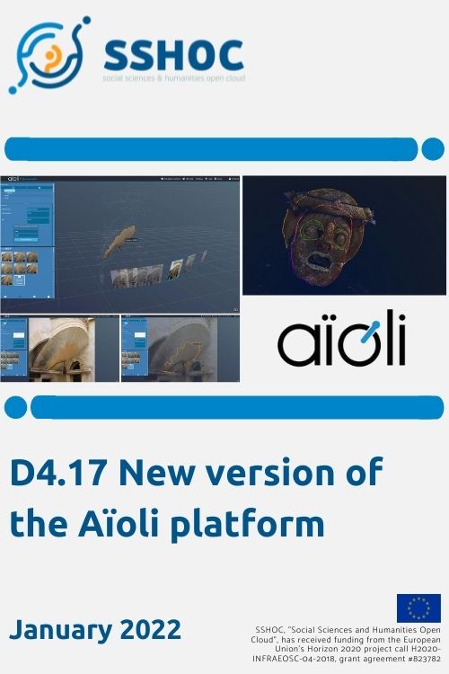 This document describes the evolutions of Aioli and the new features implemented within the framework of the SSHOC project since its previous version. The development version of Aioli is currently hosted on one of the CNRS MAP servers and can be accessed through the following link: https://absinthe.aioli.map.cnrs.fr/index. A beta testing version of the platform will be available at https://beta.aioli.map.cnrs.fr/index (send mail to contact@aioli.cloud for an account creation).