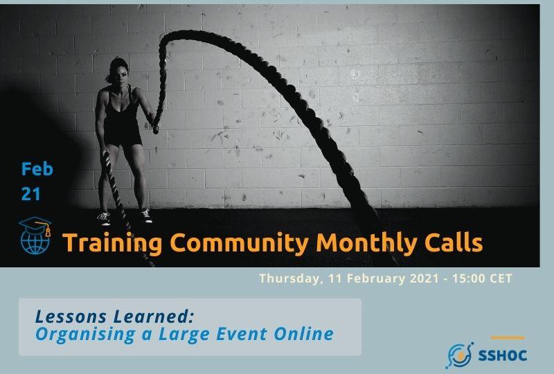 "Lessons Learned: Organising a Large Event Online" is the topic of this month's informal call between members of the SSH Training Community.