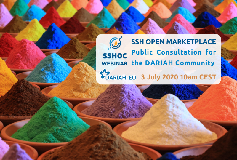 Then save the date - Friday 3 July, at 10h CEST - and join us in a webinar that aims to give the DARIAH community a first glimpse of the Alpha release of the SSH Open Marketplace!