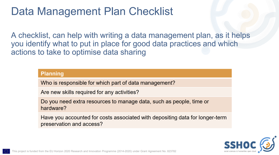 Image 1: Data Management Plan Checklist: Planning