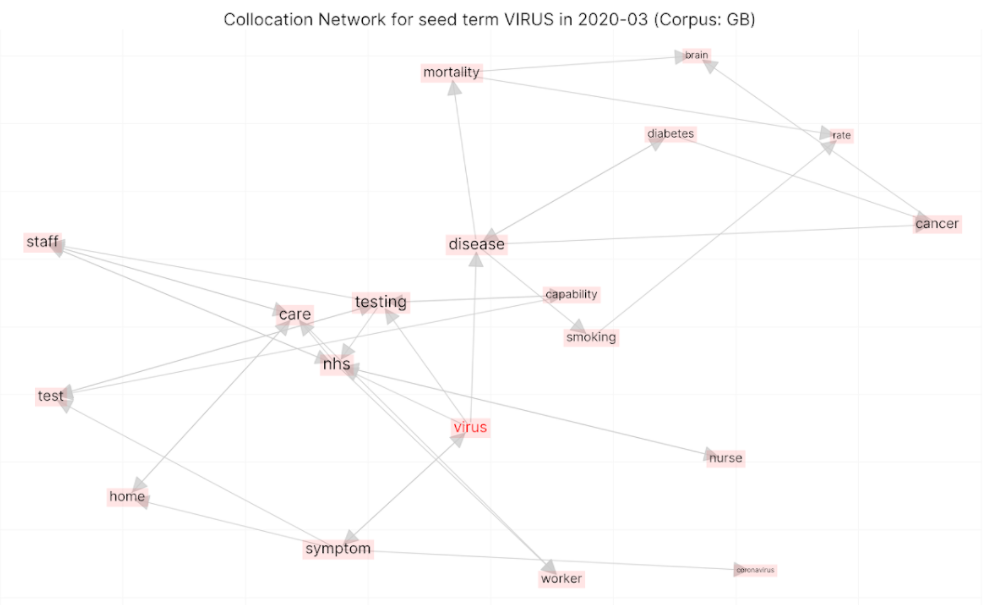 Figure 2: Collocation network for VIRUS in March