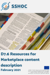 The SSH Open Marketplace is one of the key exploitable results of the SSHOC project. It is designed to be a central information hub where researchers can go to find detailed information about software tools, relevant publications, datasets and workflows. Within the Marketplace contextualisation should be provided, linking, for example, publications to the tools or datasets they mention.