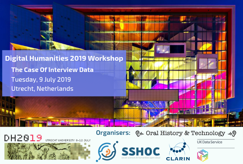The event will take place at the Digital Humanities Conference 2019, in Utrecht from the 9th to the 12th of July and it is organised by Oralhistory.eu in collaboration with the SSHOC project, with CLARIN ERIC and with the UK Data Service. This workshop addresses the data creation phase of the data lifecycle within the Social Sciences and Humanities, one of the major goals of the SSHOC project. Through this event we aim to break down some of the barriers that scholars encounter in the use of speech technologies and interview data by offering the opportunity to apply, experiment and exchange tools and methods that have been developed in the realm of Digital Humanities.